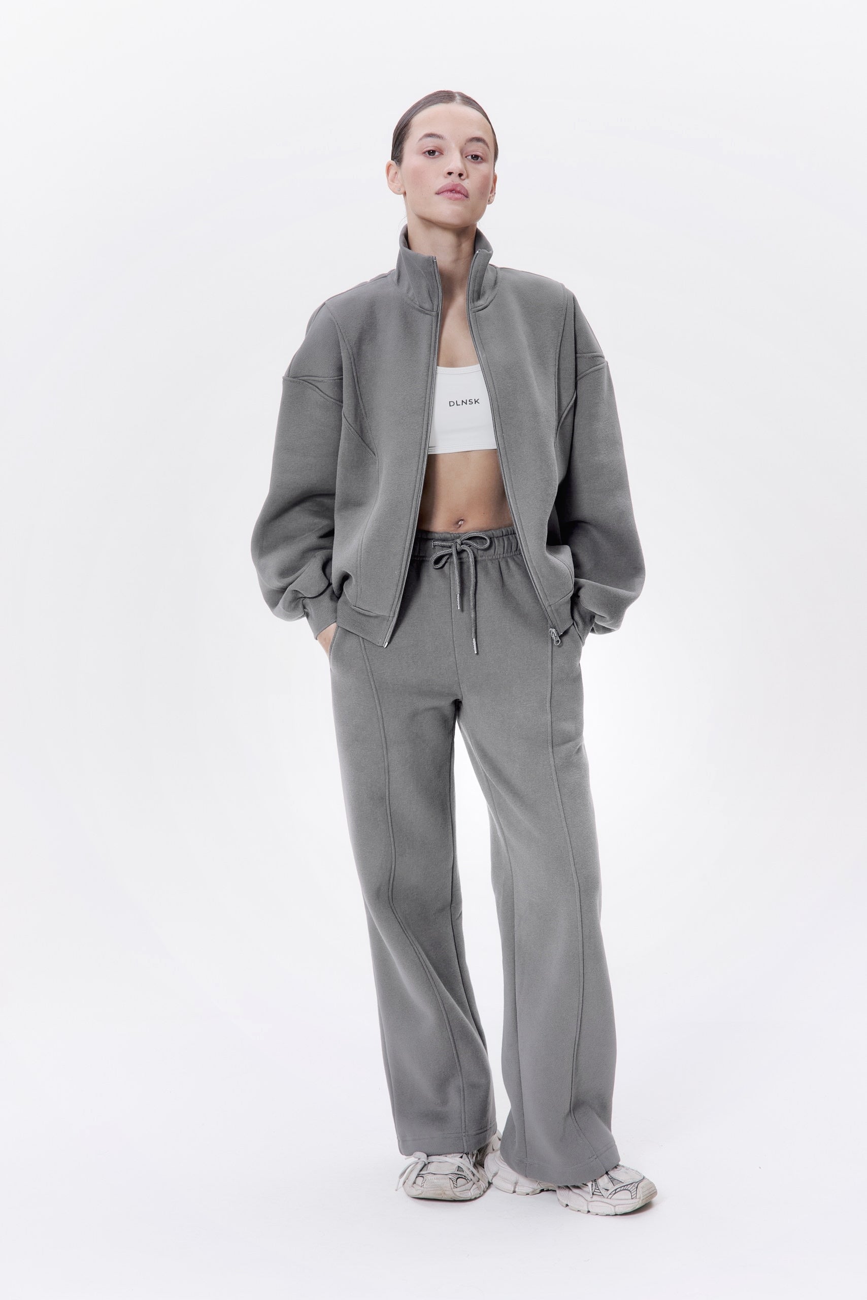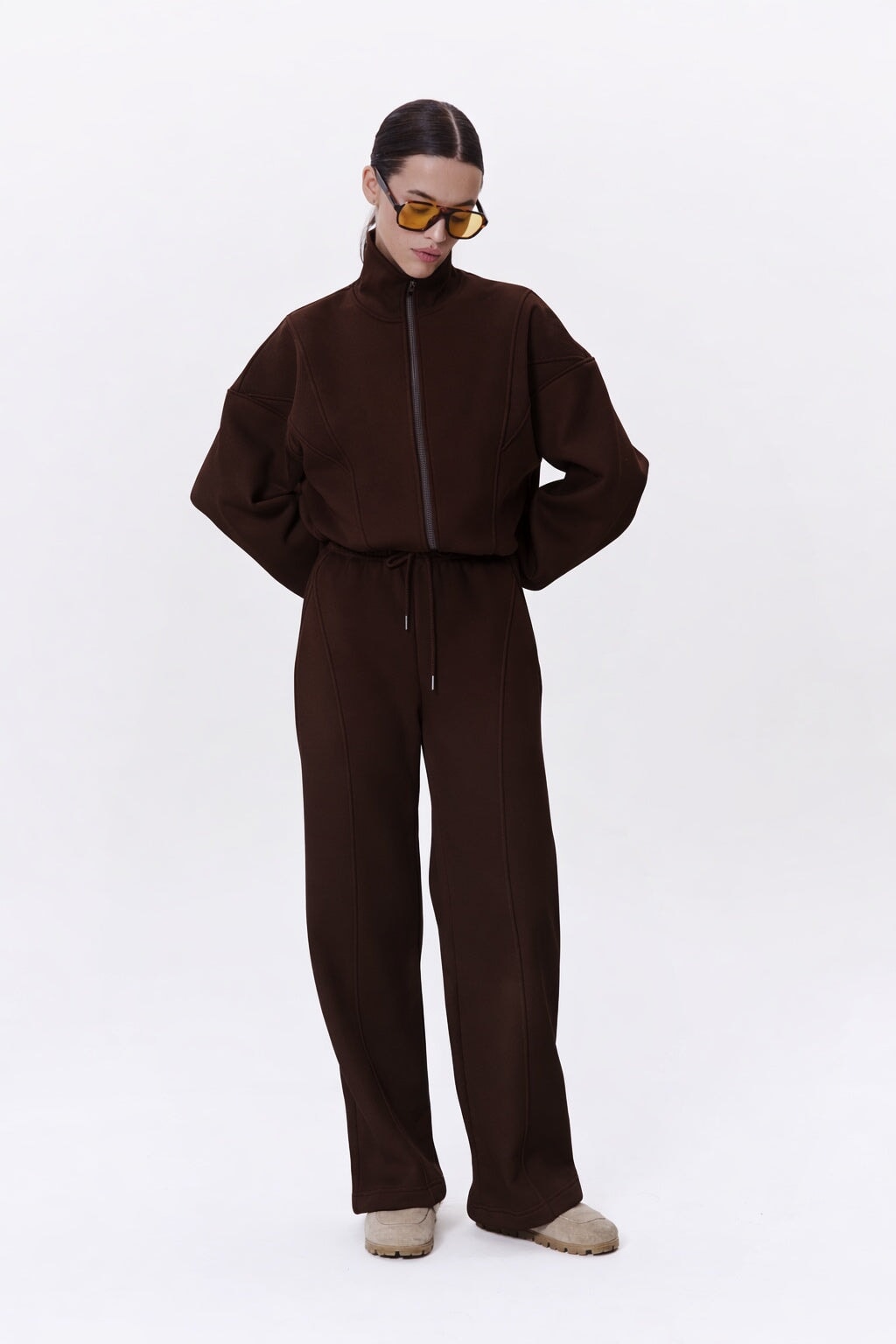 Effortless, minimal, and elevated. The Aura Set combines a cropped zip-up jacket with wide-leg trousers for the perfect balance of comfort and sophistication. Made from soft, structured cotton that feels smooth on the skin and moves with you through the day. A timeless look designed for confidence in every moment — from slow mornings to city nights.