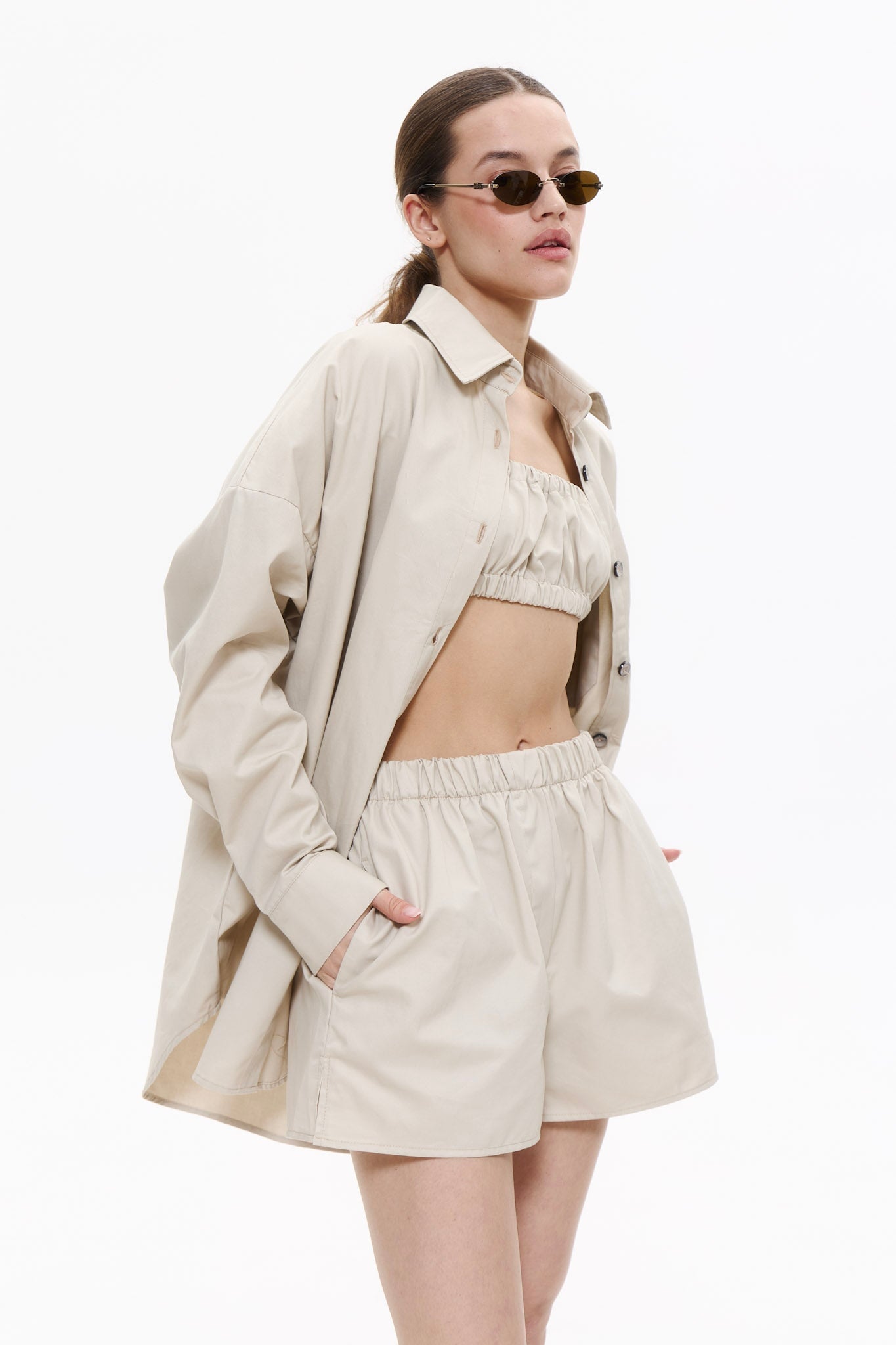 Comfy like you borrowed them — but made just for you. The Boyfriend Shorts bring that relaxed, loose-fit energy with a flattering high waist that still keeps its shape. Soft, breathable, and easy to style, they’re your warm-weather essential. Pair them with our Vacation Top and Oversized Shirt for a full laid-back summer vibe that looks like zero effort (but hits every time).